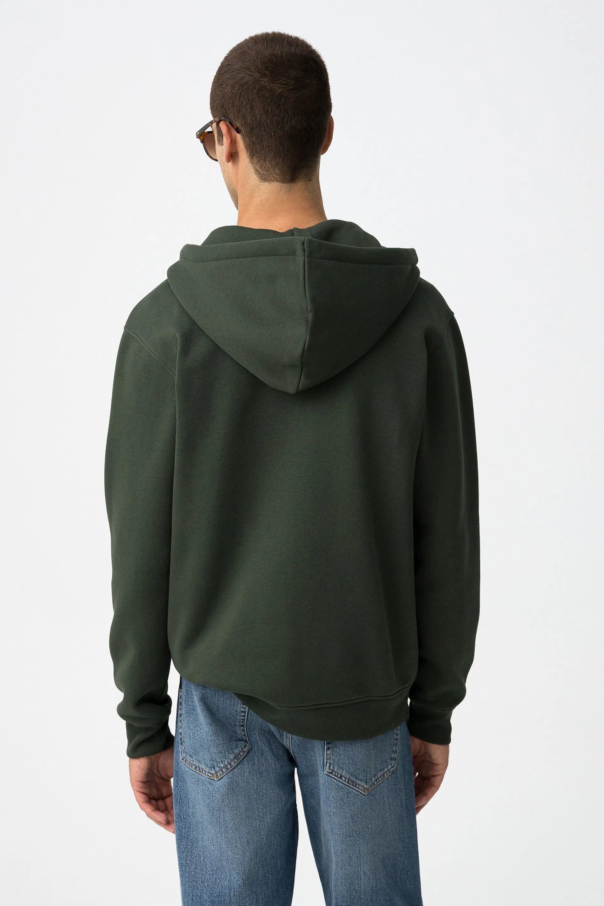 Casaco regular fit de malha com pormenor em alto-relevo e bolsos canguru. Capuz ajustável por cordão, manga longa, fecho de correr e terminações em rib. Interior cardado.