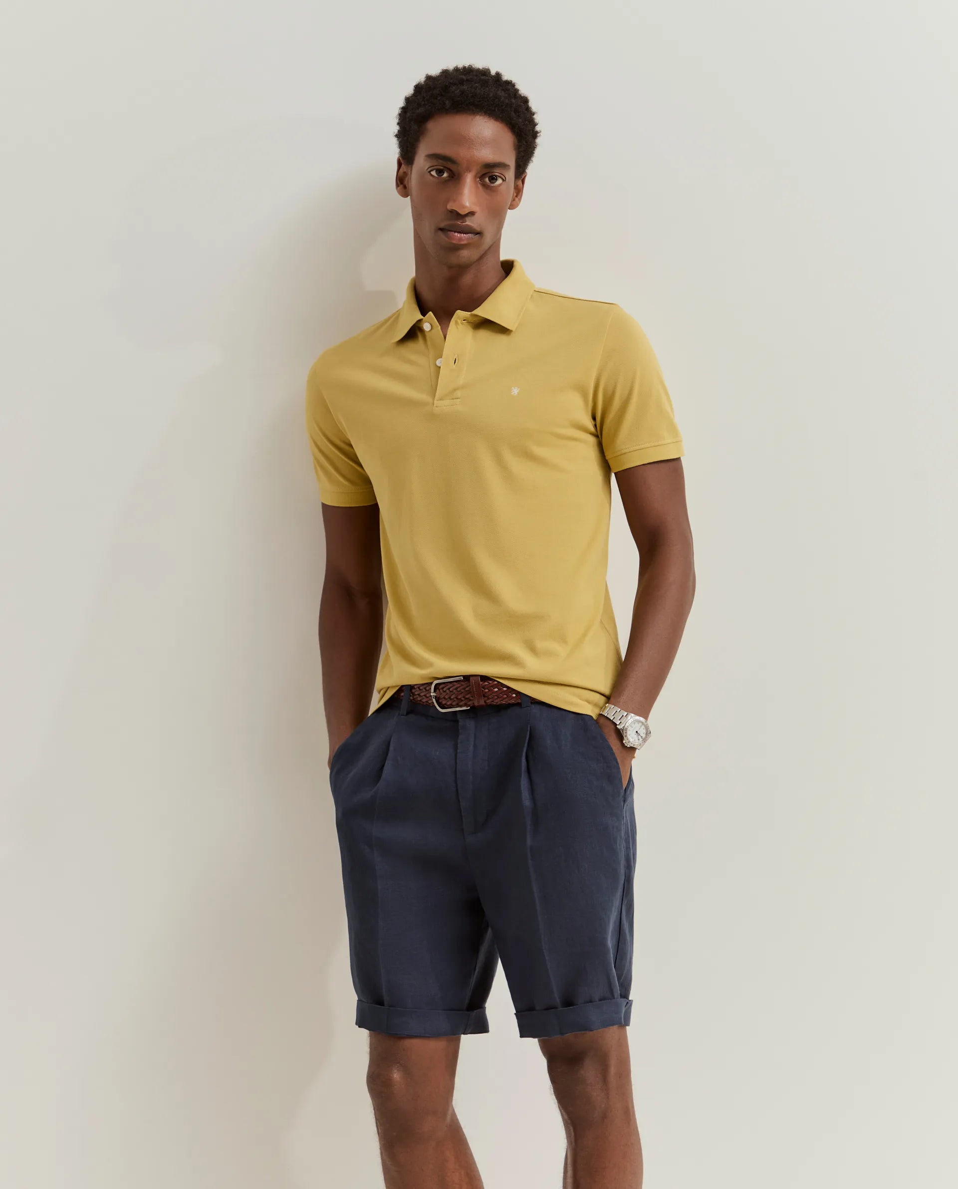 Polo de manga curta em corte slim fit.